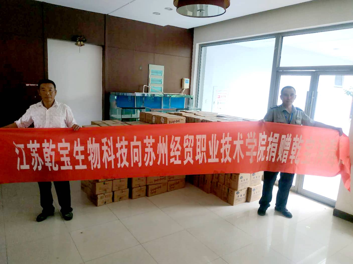 江蘇乾寶生物科技有限公司向蘇州經貿職業技術學院捐贈消毒液