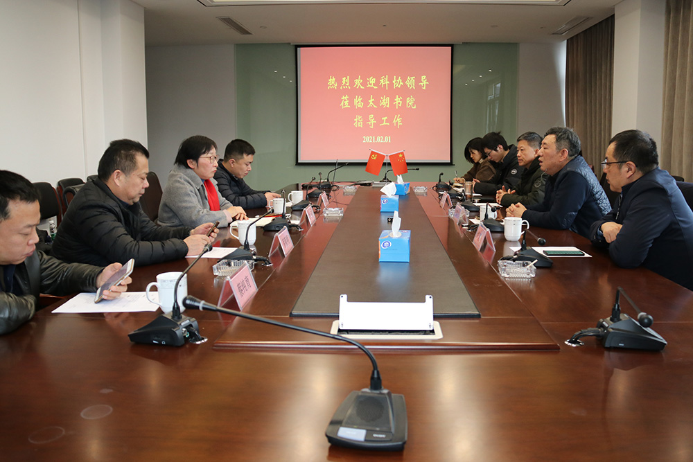 2月1日,吳中區科協俞菊副主席蒞臨太湖書院考察指導,區科協普及部部長馮朋超、胥口鎮科技辦主任蔡菊明等陪同考察。江蘇乾寶集團執行總裁、太湖書院秘書長王翼寧,集團常務副總裁、書院副院長許建華,書院執行院長王建明等人熱情接待。