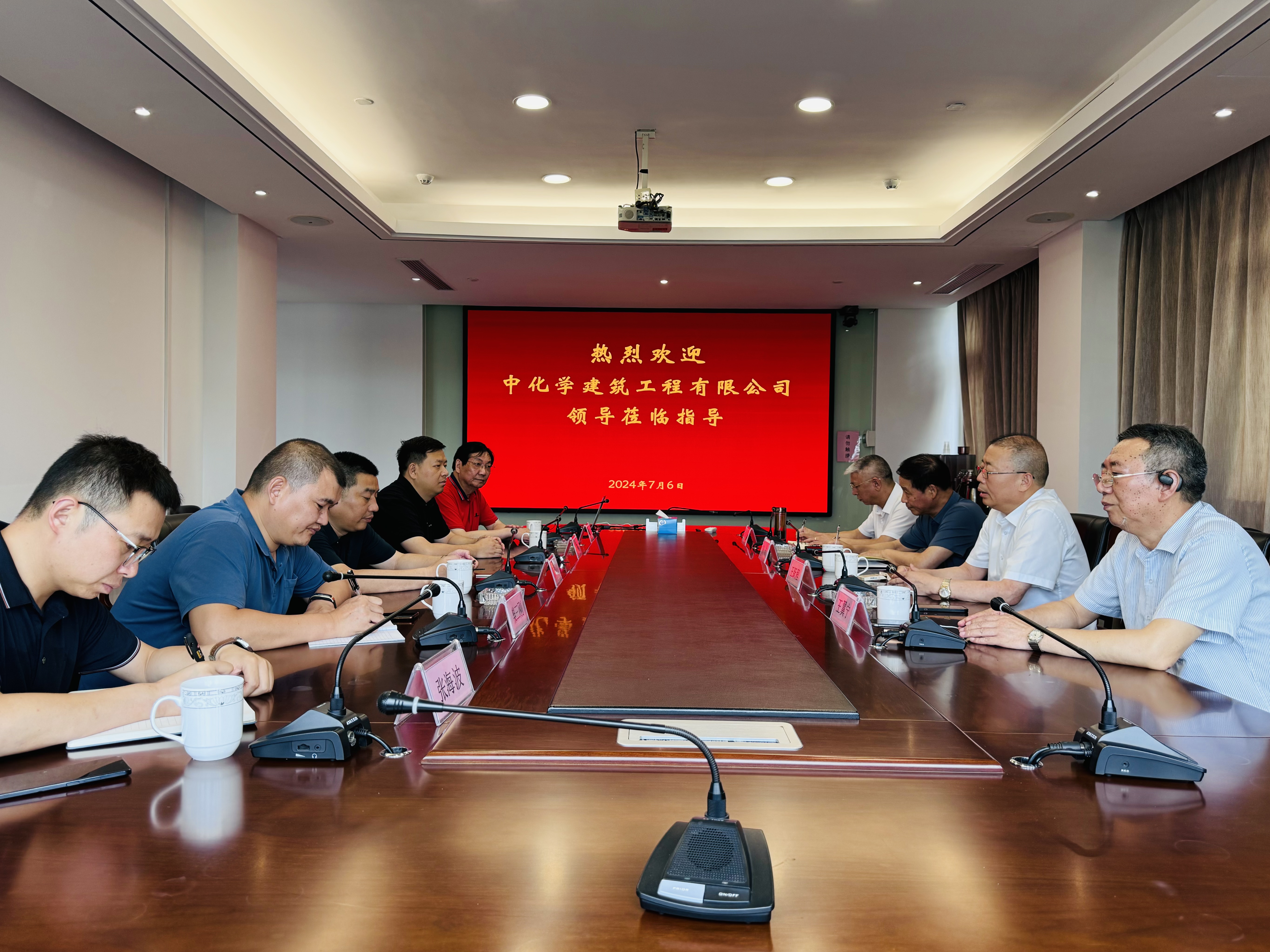 2024年7月6日下午,中化學建筑工程有限公司黨委書記、執行董事何國山,中化學建筑工程有限公司市場部部長柴三剛,蘇州經營部副總經理余中兵等一行受邀考察乾寶集團總部。江蘇乾寶科技發展集團有限公司董事長王躍程、總裁朱波、太湖書院副理事長兼秘書長王翼寧、蘇州天堂美公司總經理馬向農、太湖書院文化有限公司總經理寧盛昌等相關負責人陪同調研考察。
