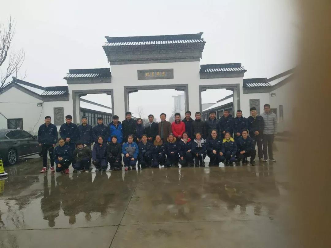 實(shí)習(xí)生與老師、企業(yè)領(lǐng)導(dǎo)在門前合影留念