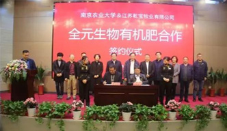 ? ? ? ?2018年11月11日,南京農業大學、江蘇乾寶牧業“全元生物有機肥技術合作簽約儀式”在乾寶湖羊產業基地隆重舉行!? ? ? ?鹽城市人民政府副市長顧云嶺、南京農業大學學術委員會主任沈其榮教授、鹽城市農業委員會主任施建霞、鹽城市亭湖區常委周曉東、鹽城市亭湖區農業委員會主任馬梅、鹽城市亭湖區鹽東鎮黨委書記尤偉光、江蘇乾寶牧業有限公司王躍程董事長、江蘇乾寶牧業有限公司執行總裁蔣柏林、江蘇乾...