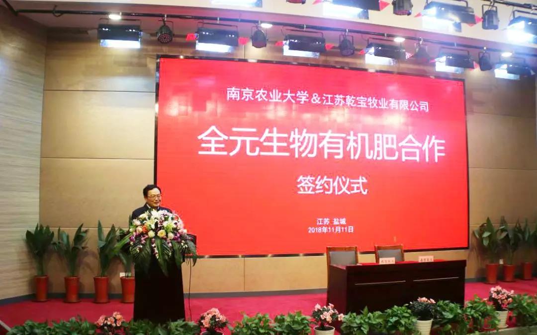 ? ? ? ?2018年11月11日,南京農業大學、江蘇乾寶牧業“全元生物有機肥技術合作簽約儀式”在乾寶湖羊產業基地隆重舉行!