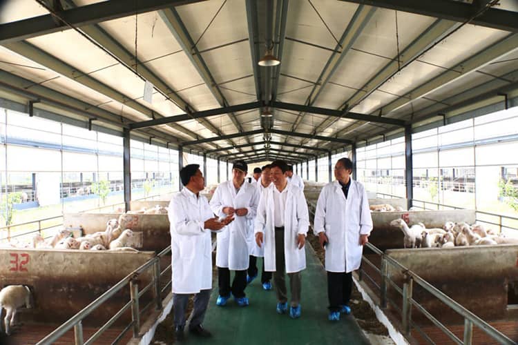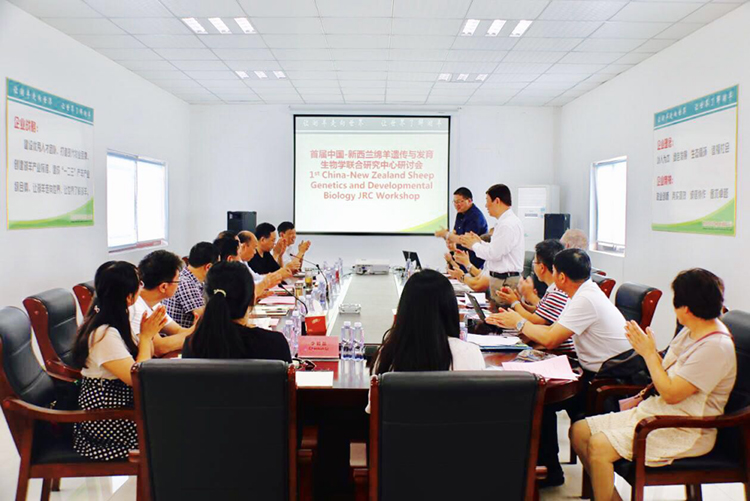 2017年6月8日新西蘭梅西大學動物與生物醫學院前院長Hugh Blair休/布萊爾,現院長Paul Kenyon 鮑爾/肯因,石河子大學研究生院院長高劍鋒、新疆畜牧科學院(農業部)綿羊研究中心主任劉明軍、河北農業大學畜牧學院教授田樹軍、鹽城市科技局副局長石春山、鹽城市畜牧獸醫站站長、推廣研究員楊 凌、鹽城市亭湖區農業委員會副主任李亞非、乾寶集團董事長王躍程、乾寶產業園總裁王榮華、乾寶產業園總經理束海平以及乾寶產業園領導成員在乾寶牧業舉行第一屆中國—新西蘭綿羊遺傳與發育生物學研討會。