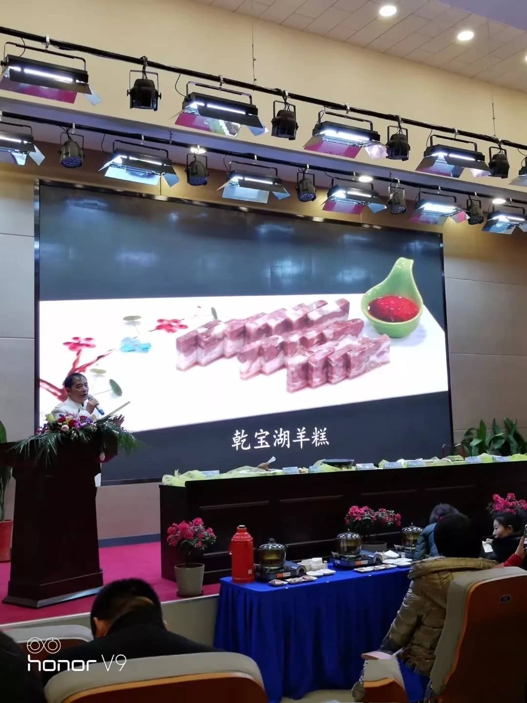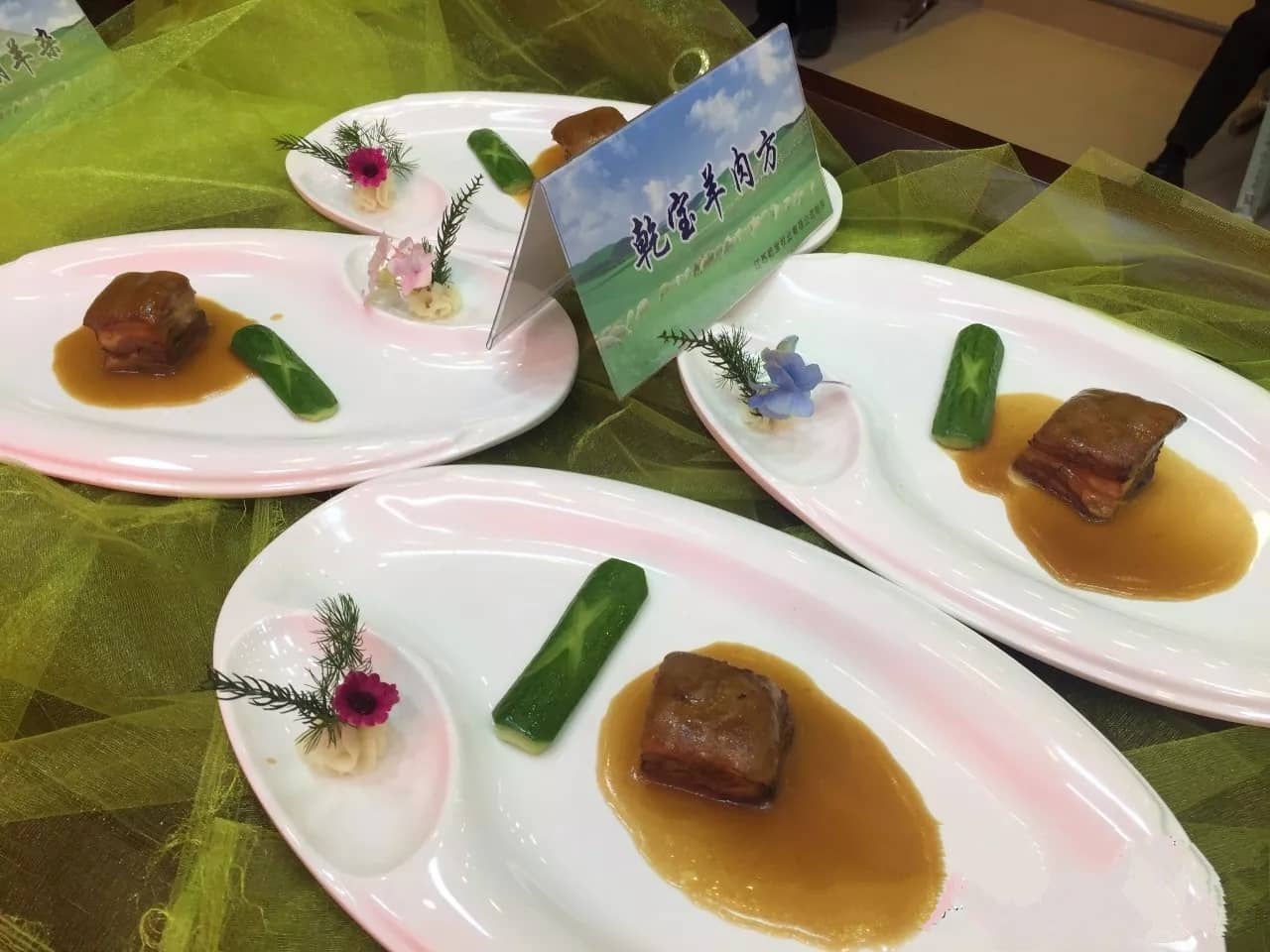 在新菜品發布環節,烹飪協會方面專家與烹飪大師共同揭曉了乾寶湖羊糕、酒燜蹄花雞、金菊湖羊圈、石烹湖羊腦、乾寶老鹵拼、滋補羊腎寶、乾寶湖羊包、乾寶羊肉方、乾寶富貴圓,干鍋湖羊雜等十大菜品并發布評定結果。