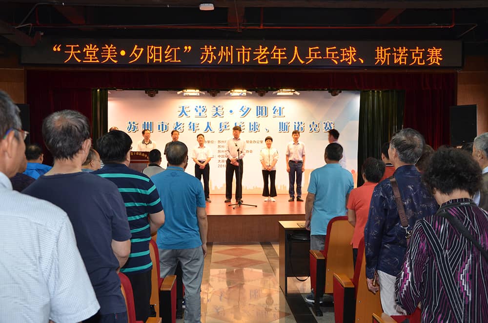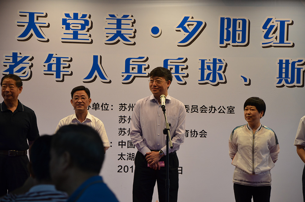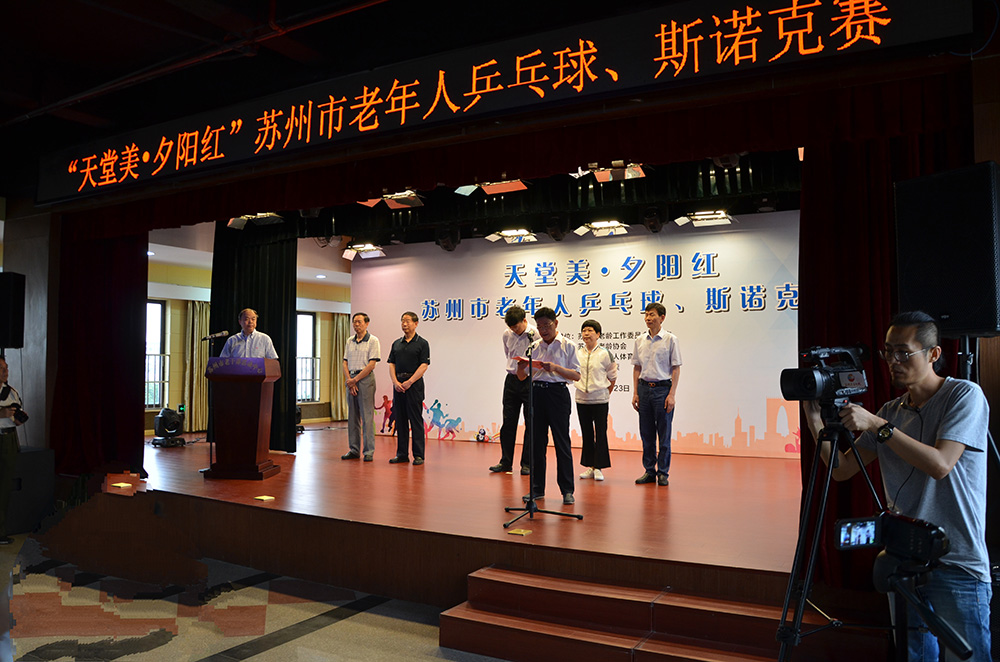6月23日,由蘇州市老齡辦、蘇州市老齡協會、蘇州市老年人體育協會聯合主辦的“天堂美·夕陽紅”蘇州市老年人乒乓球、斯諾克賽于在市委老干部局的活動中心舉行。活動開始前舉行了簡短的開幕式,市政府聶飆副市長,市人大常委會原副主任、市老齡協會周玉龍會長,市委老干部局、市民政局等領導出席開幕式。開幕式由市民政局副局長、市老齡協會鄭利江常務副會長主持,周玉龍會長致辭,聶飆副市長宣布比賽開始。出席開幕式的還有各市(區)老齡辦、老齡協會、老年體協負責人及運動員、裁判員共200多人。