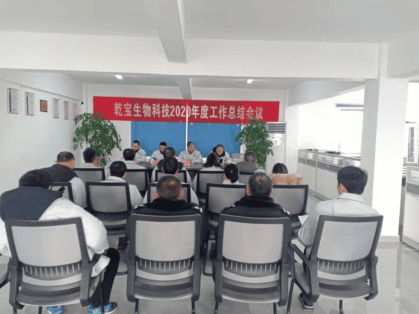 2021年元月15日上午九時整,江蘇乾寶生物科技有限公司在阜寧生產基地會議室隆重召開了公司2020年度工作總結會議。乾寶生物科技總經理丘東及工廠所有人員在生產基地參加了本次會議,市場營銷中心全體人員以視頻連線的方式,在蘇州辦公室在線參加了會議。會議對公司全年工作進行總結并對新的一年工作進行部署。