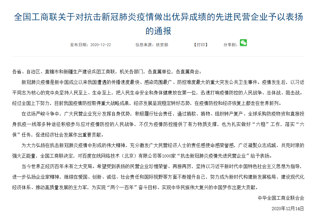 近期,中華全國工商業(yè)聯合會對抗擊新冠肺炎疫情做出優(yōu)異成績的先進民營企業(yè)予以表揚,江蘇乾寶生物科技有限公司榮登榜單。