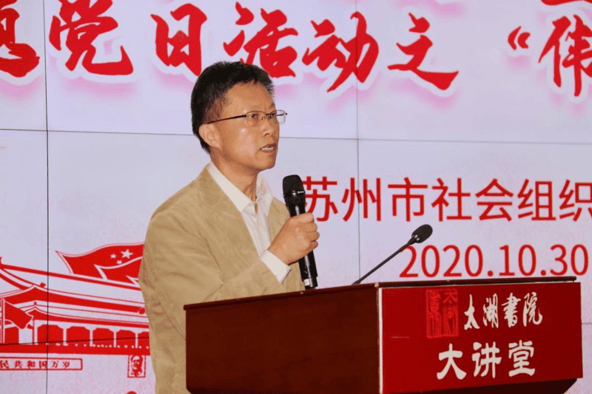 活動上,太湖書院執(zhí)行院長王建明代表活動承辦單位致歡迎辭,并對市社會組織黨委多年來給予的關(guān)心支持表示感謝;簡要介紹了太湖書院黨支部在第一任書記丘亮輝的領(lǐng)導(dǎo)下,在書院理事長王躍程的大力支持下所取得的長足進步;闡述了太湖書院黨支部黨建特色:以習(xí) 近平新時代中國特色社會主義思想為指導(dǎo),堅定文化自信;以踐行社會主義核心價值觀為主線,積極參加蘇州市社會組織黨委的各項活動,積極發(fā)揮太湖書院的優(yōu)勢傳播新時代中國特色社會主義文化;圍繞蘇州市委市政府的重大決策,自覺服務(wù)地方經(jīng)濟社會的發(fā)展,充分發(fā)揮建言獻策的智庫功能,并多次獲得了市委市政府主要領(lǐng)導(dǎo)的批示。