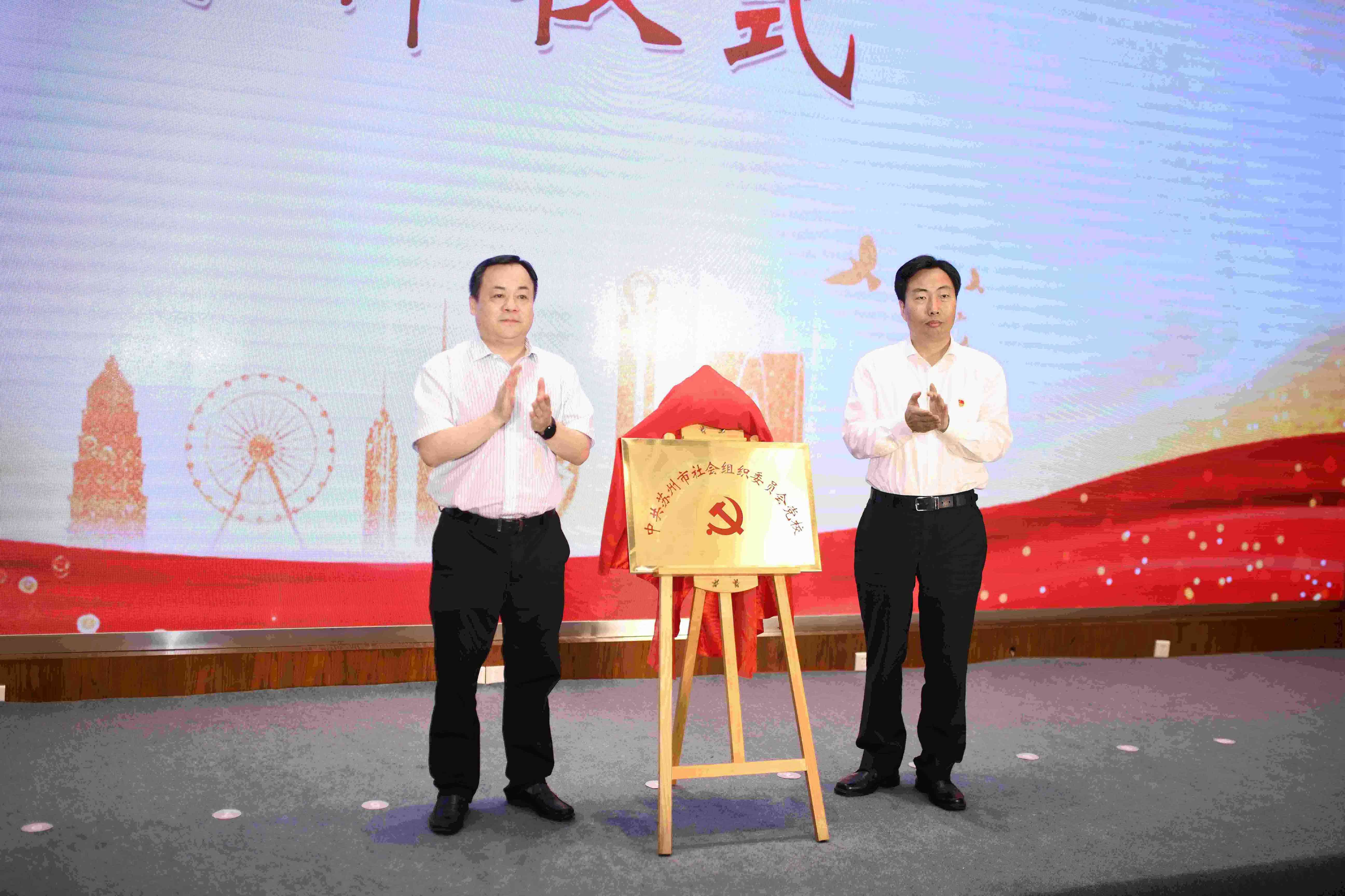 活動現場,蘇州市委組織部周春良副部長,市委市級機關工委吳菊錚書記,市委黨校常務副校長、市行政學院楊軍院長,市民政局蔣亞亭局長共同為中共蘇州市社會組織委員會黨校、中共蘇州市委黨校社會組織黨委分校揭牌。